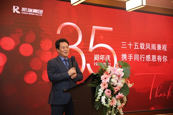 2021年11月28日,集團中高層管理人員、社會各界關心幫助凱瑞成長的朋友、集團員工代表在鉑瑞酒店公司隆重慶祝凱瑞集團成立三十五周年。