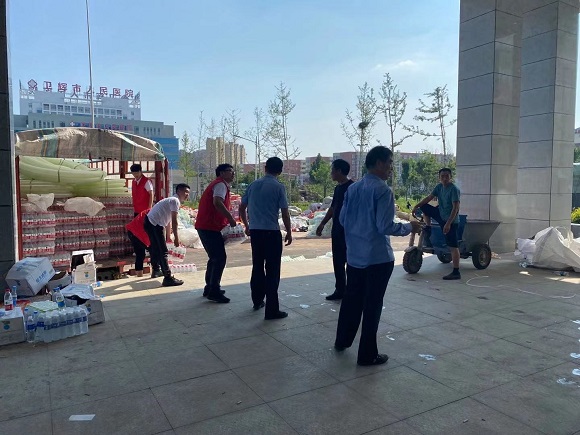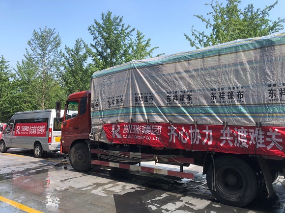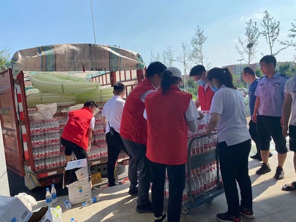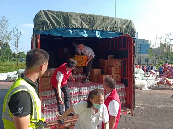 (凱瑞集團(tuán)支援人員進(jìn)行物資交接并協(xié)助卸運(yùn))