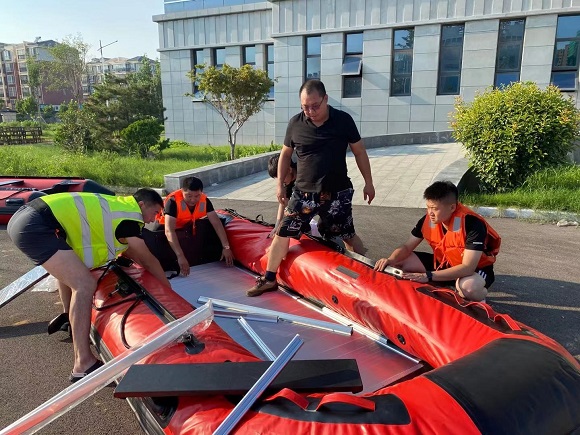 (支援隊(duì)員現(xiàn)場組裝救援設(shè)備)