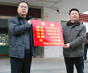 凱瑞作為一家洛陽(yáng)本土企業(yè),始終將造福桑梓,回饋社會(huì)作為企業(yè)優(yōu)良傳統(tǒng),同時(shí)也體現(xiàn)了企業(yè)“品質(zhì)、信任、分享”核心價(jià)值觀;多年來,凱瑞一直將關(guān)注社會(huì)公益,回饋社會(huì)作為自己的責(zé)任,希望通過我們的行動(dòng)和努力,讓更多的愛心企業(yè)、愛心人士幫助那些真正需要幫助的困難群眾??h委、縣政府代表王部長(zhǎng)接受了我方捐贈(zèng),并授予了凱瑞“大愛無疆、雪中送炭”的錦旗。